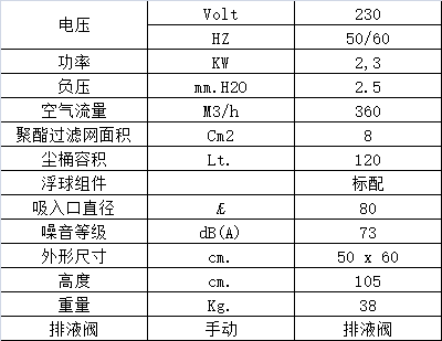 塵桶容量120 lt.,排水很方便,可通過底部的排水閥直接排出。