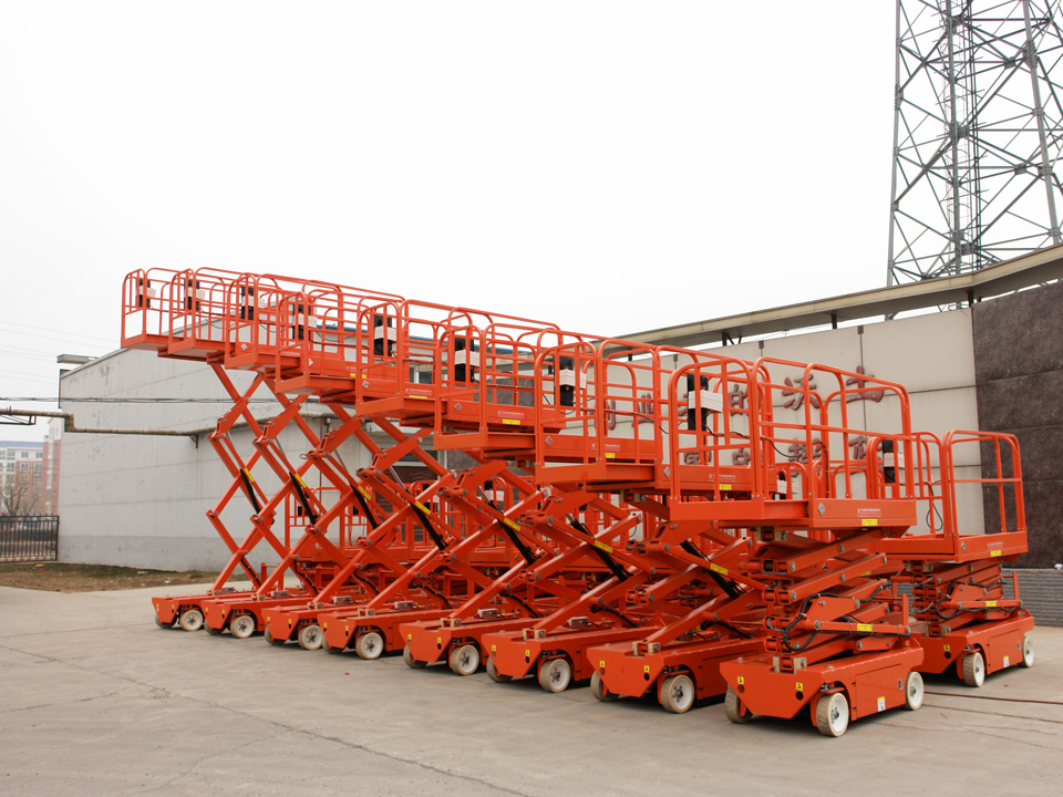 剪叉自行走式升降平臺,機動性強,工作范圍大,如公路交通、路燈照明、工程搶險等。它的動力可以使用汽車發動機或者直流電池、使用安全可靠。